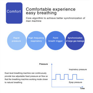 The more forceful the exhalation, the greater the pressure reduction. At the same time, the inhalation pressure is intelligently optimized, leading to a better adaptation to natural breathing mechanics.