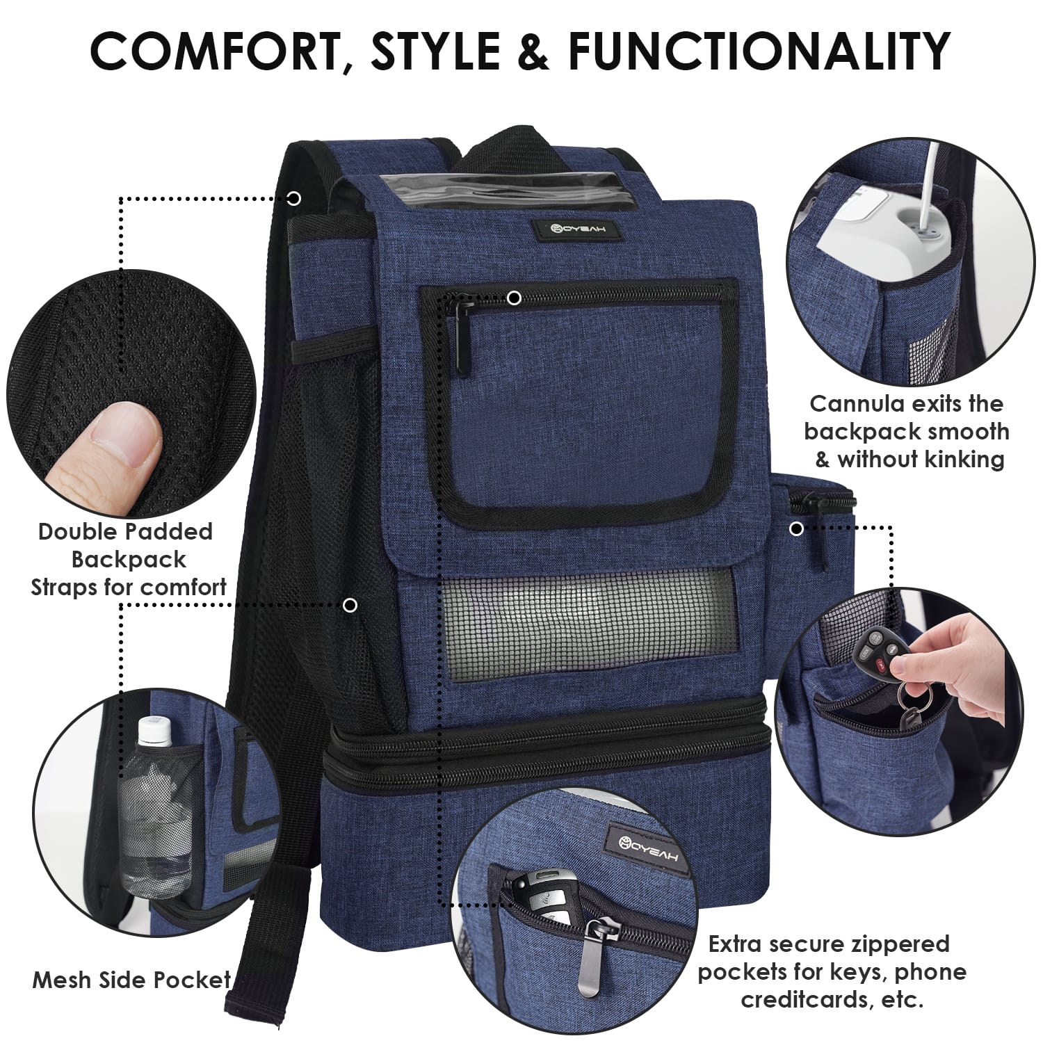 Easily transport your oxygen device on your back.